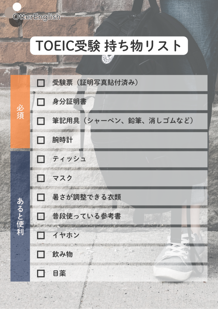 TOEIC当日の持ち物11個のチェックリストは以下を画像で保存してください。